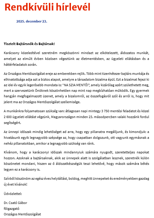 Tisztelt Bajtársnők és Bajtársak! Karácsony közeledtével szeretném megköszönni mindazt az...
